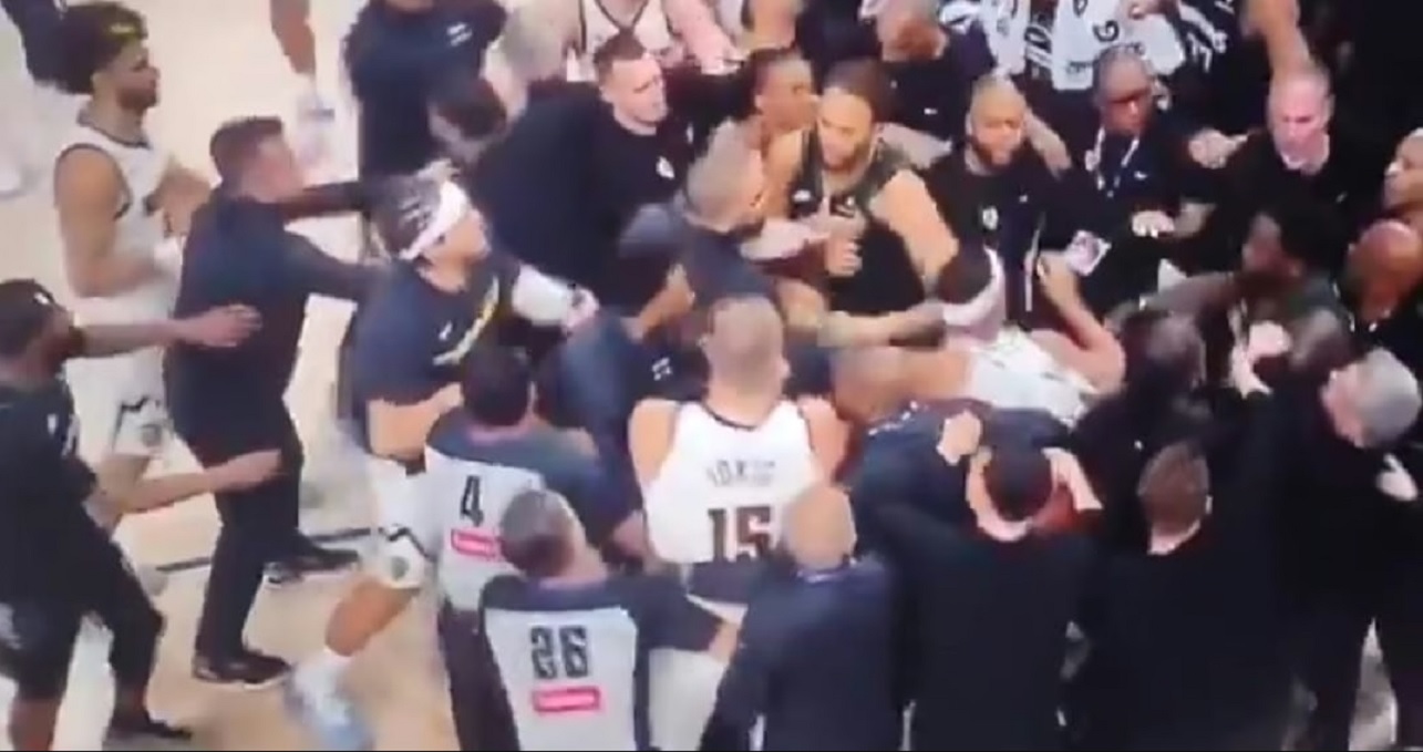 To je razbesnelo Jokića koji se zaleteo na protivnika i tada je nastala tuča. Guranje, povlačenje za dres, gužva… Ubrzo su se priključili i ostali igrači a mnogi od njih su izgledali kao da samo žele da prekinu sukob.