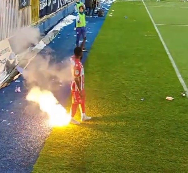 Ipak, jedan detalj, nadasve necivilizovan i sramotan, mnogima je promakao. Naime, Zvezdinog internacionalaca Gelora Kangu huligani su pogodili bakljom. Dok se spremao na izvede korner, plamen je Kangu pogodio u leđa. Ali, zanimljivo, on je odreagovao kao da se ništa nije dogodilo. Međutim, sigurno mu ne bi bilo prijatno da je pirotehničko sredstvo završilo na njegovoj glavi.